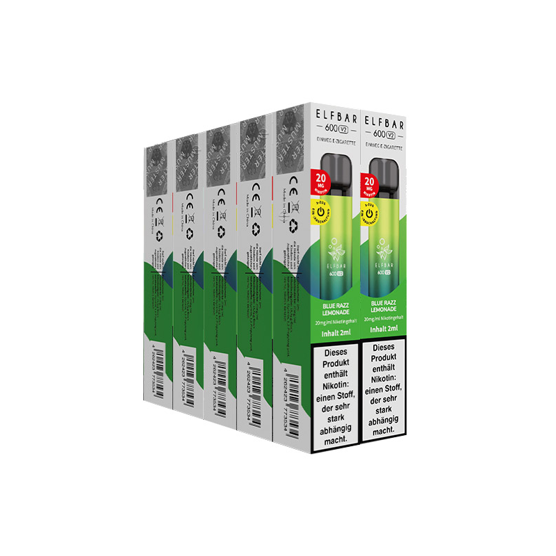 10 x ELFBAR 600 V2 Einweg E-Zigarette - Blue Razz Lemonade 20mg Nikotin