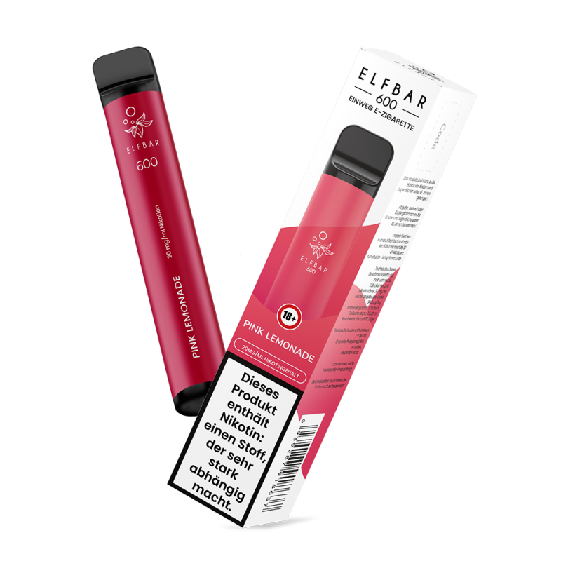 Die Elf Bar 600 Pink Lemonade dampft sich wie eine süße Beerenlimonade. Der Nikotingehalt beträgt 2% (20mg/ml).