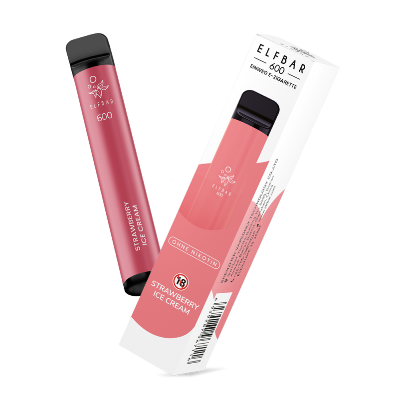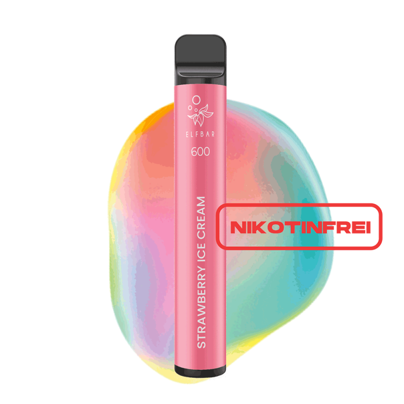 Die Elf Bar 600 Strawberry Ice Cream schmeckt nach einem cremigen Erdbeereis. Diese Variante enthält kein Nikotin.