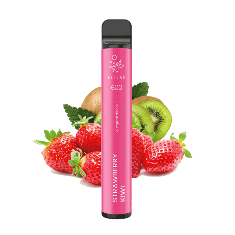 Die Elf Bar 600 Strawberry Kiwi schmeckt nach sonnengereiften Erdbeeren und exotischer Kiwi. Der Nikotingehalt beträgt 2% (20mg/ml).