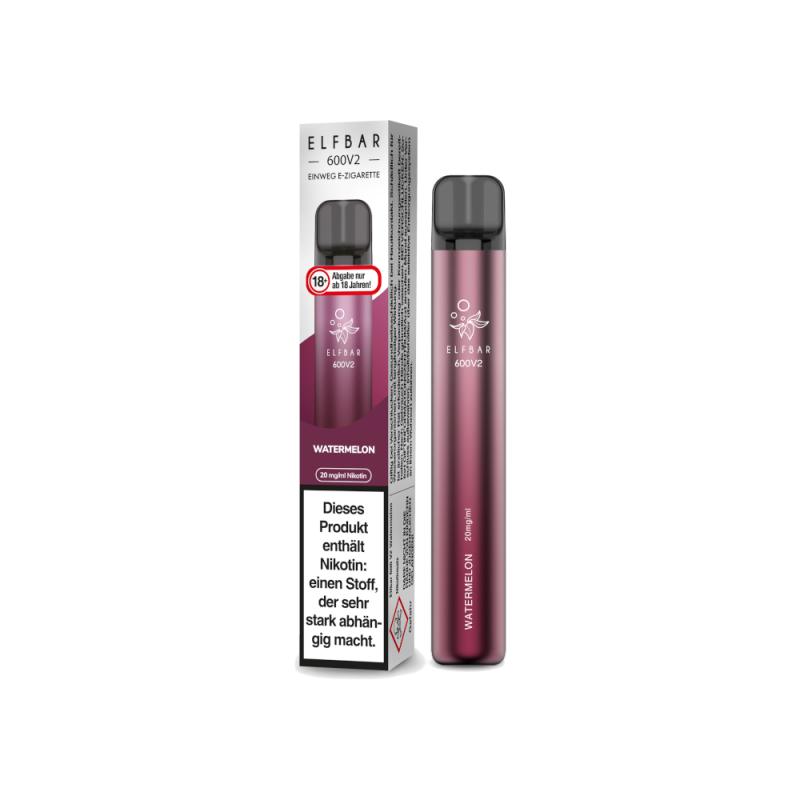 Mit der ELFBAR 600 V2 erreicht uns der aktuelle Topseller unter den Vape Sticks. Die Elf Bar ist perfekt für Anfänger und Umsteiger geeignet, da bei einer Einweg E-Zigarette weder Liquid noch Verdampfer getauscht werden müssen. In der Elf Bar 600 v2 sind 2 ml Liquid enthalten. Die fest verbaute Akkuzelle ist ebenfalls vorgeladen und ermöglicht bis zu 600 Züge. Je nach Zugstärke können die erreichbaren Züge abweichen.