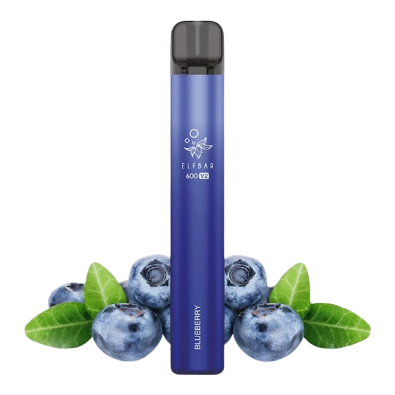 Die ELFBAR 600 V2 Blueberry schmeckt nach fruchtigen Blaubeeren. Der Nikotingehalt beträgt 2% (20mg/ml).