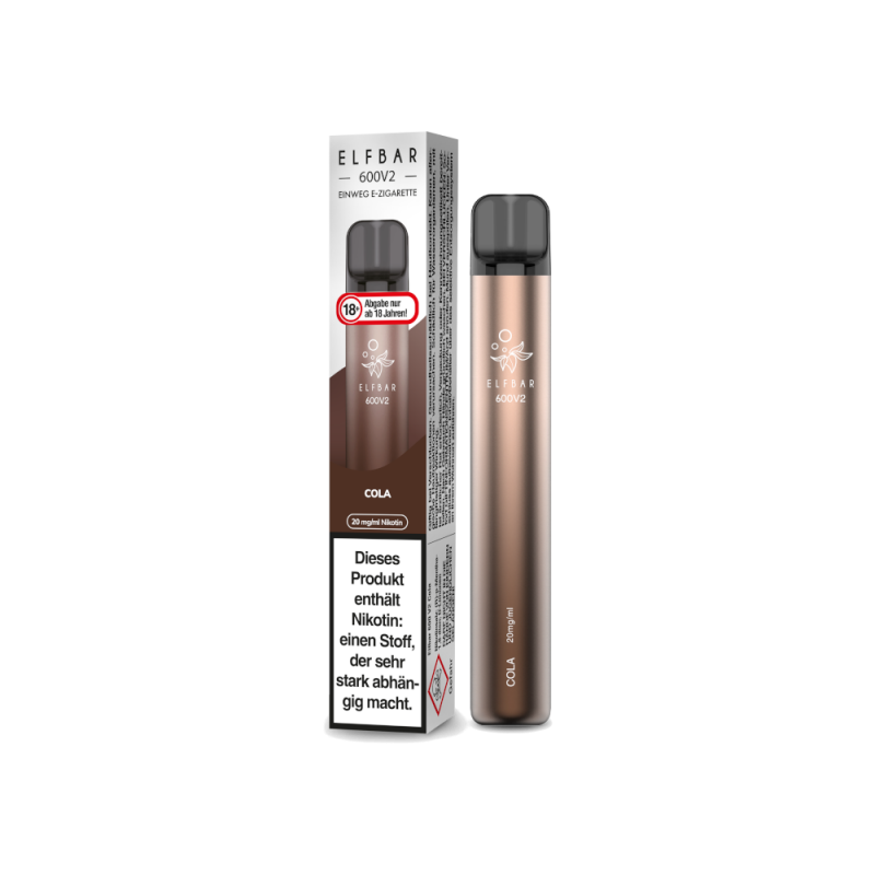 Die ELFBAR 600 V2 Cola schmeckt nach einem kalten Erfrischungsgetränk. Der Nikotingehalt beträgt 2% (20mg/ml).