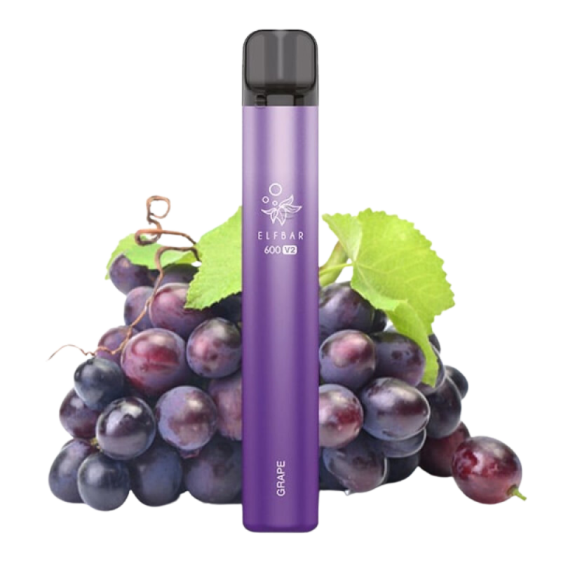 Die ELFBAR 600 V2 Grape schmeckt nach süßen roten Weintrauben. Der Nikotingehalt beträgt 2% (20mg/ml).