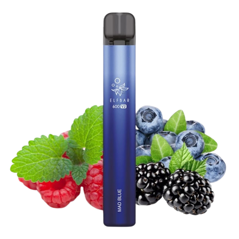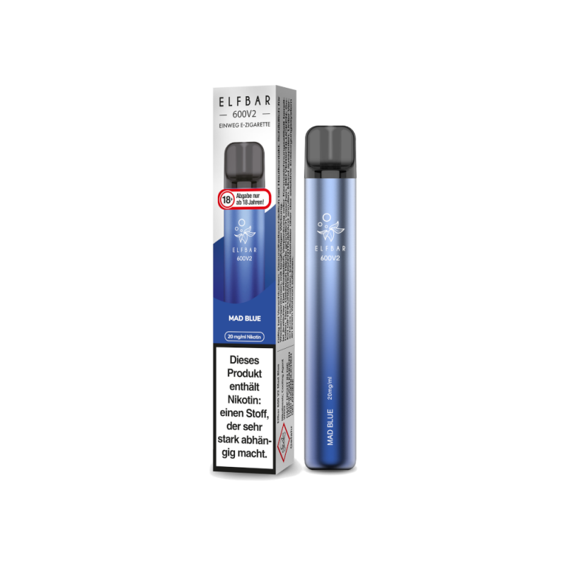 Die ELFBAR 600 V2 Mad Blue schmeckt nach süßem Beerenmix. Der Nikotingehalt beträgt 2% (20mg/ml).