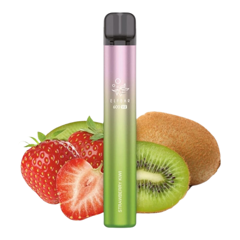 Die ELFBAR 600 V2 Strawberry Kiwi schmeckt nach süßen Erdbeeren mit Kiwi. Der Nikotingehalt beträgt 2% (20mg/ml).