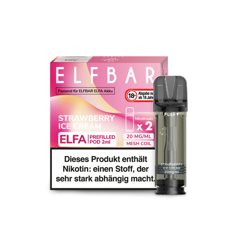 Weiterführende Links zu "ELFBAR ELFA Pod Kit 500 mAh Akku - White + ELFA Strawberry Ice Cream 20mg Nikotin 2er Pack"