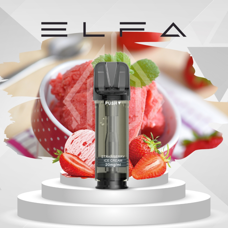 Die Elf Bar ELFA Strawberry Ice Cream schmeckt nach süßen Erdbeeren mit Eiscreme. Der Nikotingehalt beträgt 2% (20mg/ml).