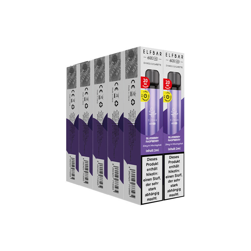 10 x ELFBAR 600 V2 Einweg E-Zigarette - Blueberry Raspberry 20mg Nikotin
