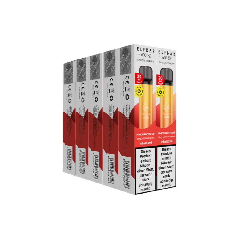 Die ELFBAR 600 V2 Pink Grapefruit schmeckt nach fruchtiger Grapefruit. Der Nikotingehalt beträgt 2% (20mg/ml).