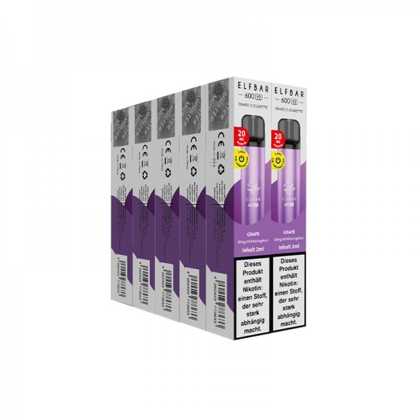 10 x ELFBAR 600 V2 Grape 20mg Nikotin