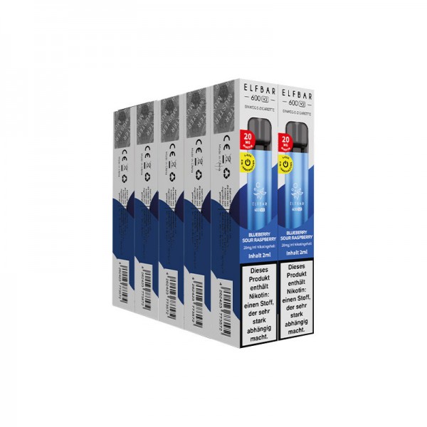 10 x ELFBAR 600 V2 Blueberry Sour Raspberry 20mg Nikotin